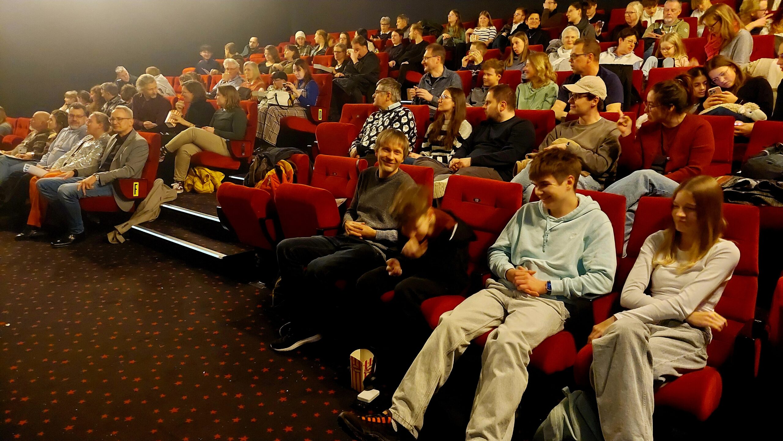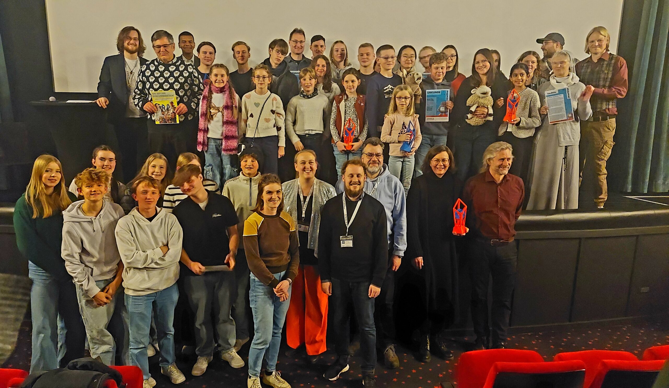 Am 22. November 2025 fand die JUFINALE im Spektrum Selb statt und verwandelte das Kino einen Tag lang in ein lebendiges Jugendfilmfestival. In vier Kinosälen wurden 26 Filme vor knapp 200 Besucher:innen gezeigt. Nach jedem Beitrag nutzten die Filmteams die Gelegenheit, in kurzen Gesprächen Einblicke in ihre Arbeit zu geben. Parallel dazu nahmen 58 Interessierte an fünf gut besuchten Workshops rund ums Filmemachen teil. Der rote Teppich, die Stelen und die neue Fotowand sorgten dabei für ein besonderes Festivalgefühl und wurden intensiv genutzt. Bei der Preisverleihung am frühen Abend wurden die Gewinner:innen der Sonderpreise, der Alterskategorien und des Publikumspreises ausgezeichnet. Anschließend blieb noch Zeit, sich im Cafébereich auszutauschen und Kontakte zu knüpfen. Alle Filme sind auch auf dem YouTube-Kanal des Bezirksjugendring zu sehen.